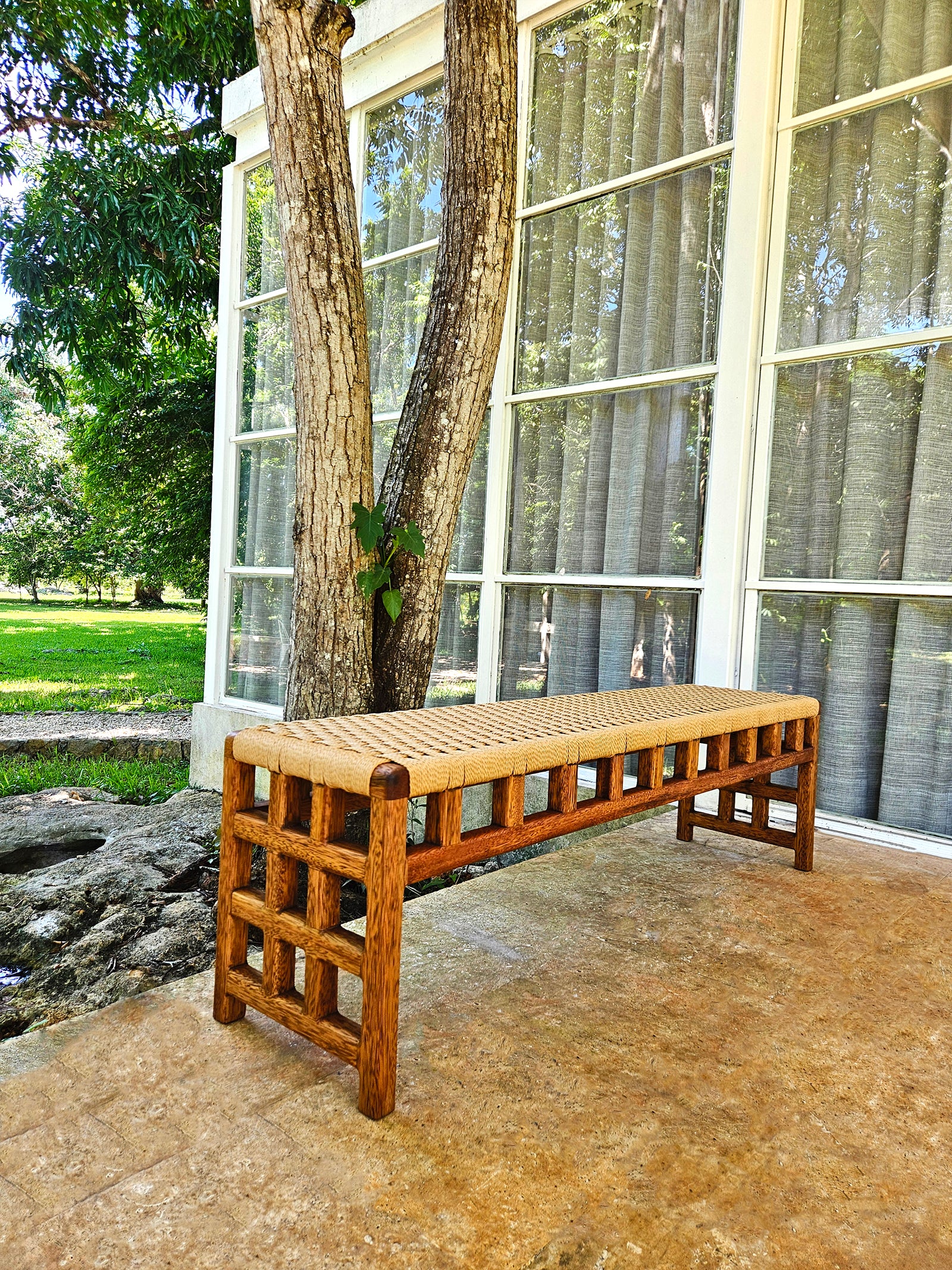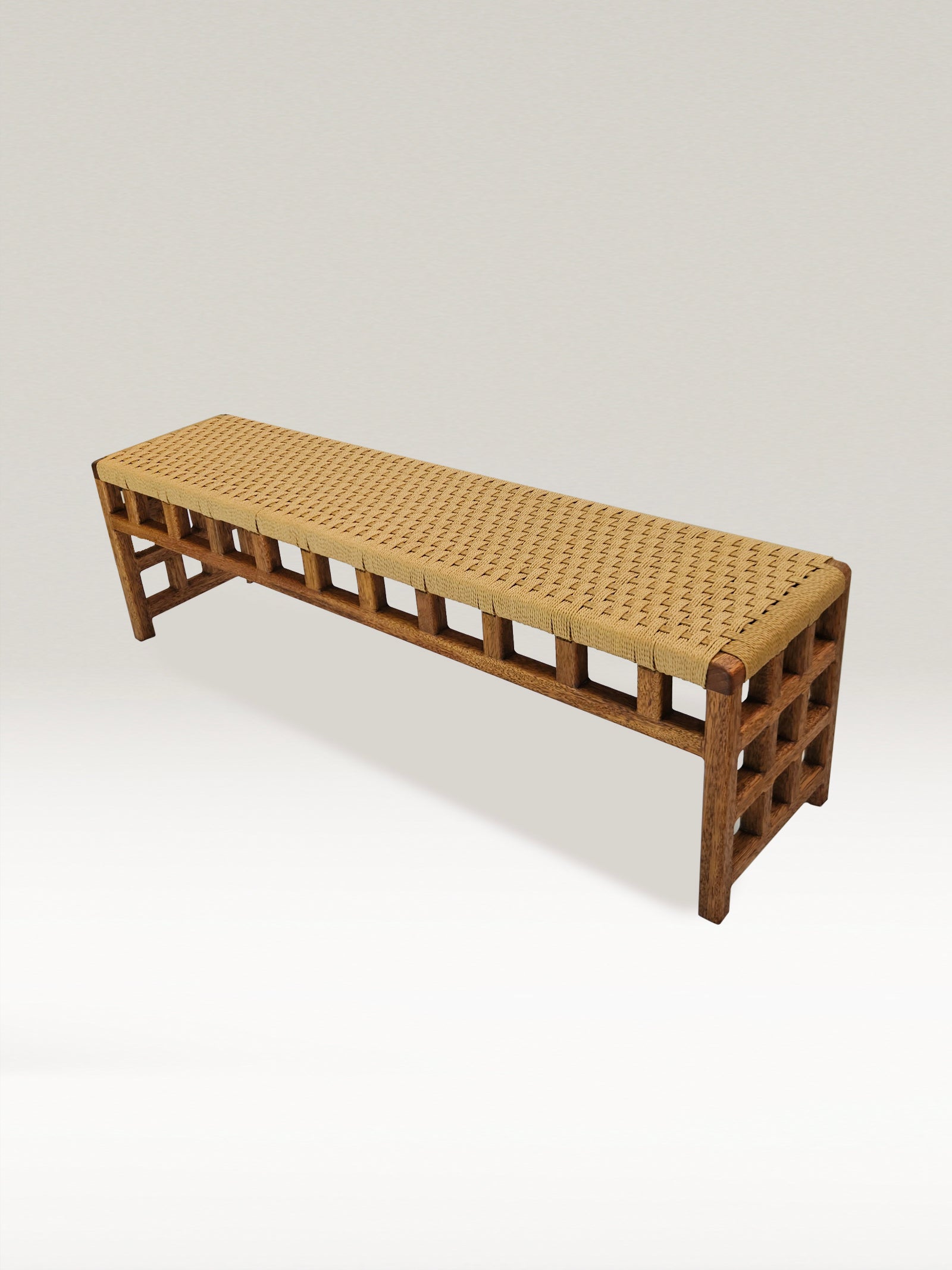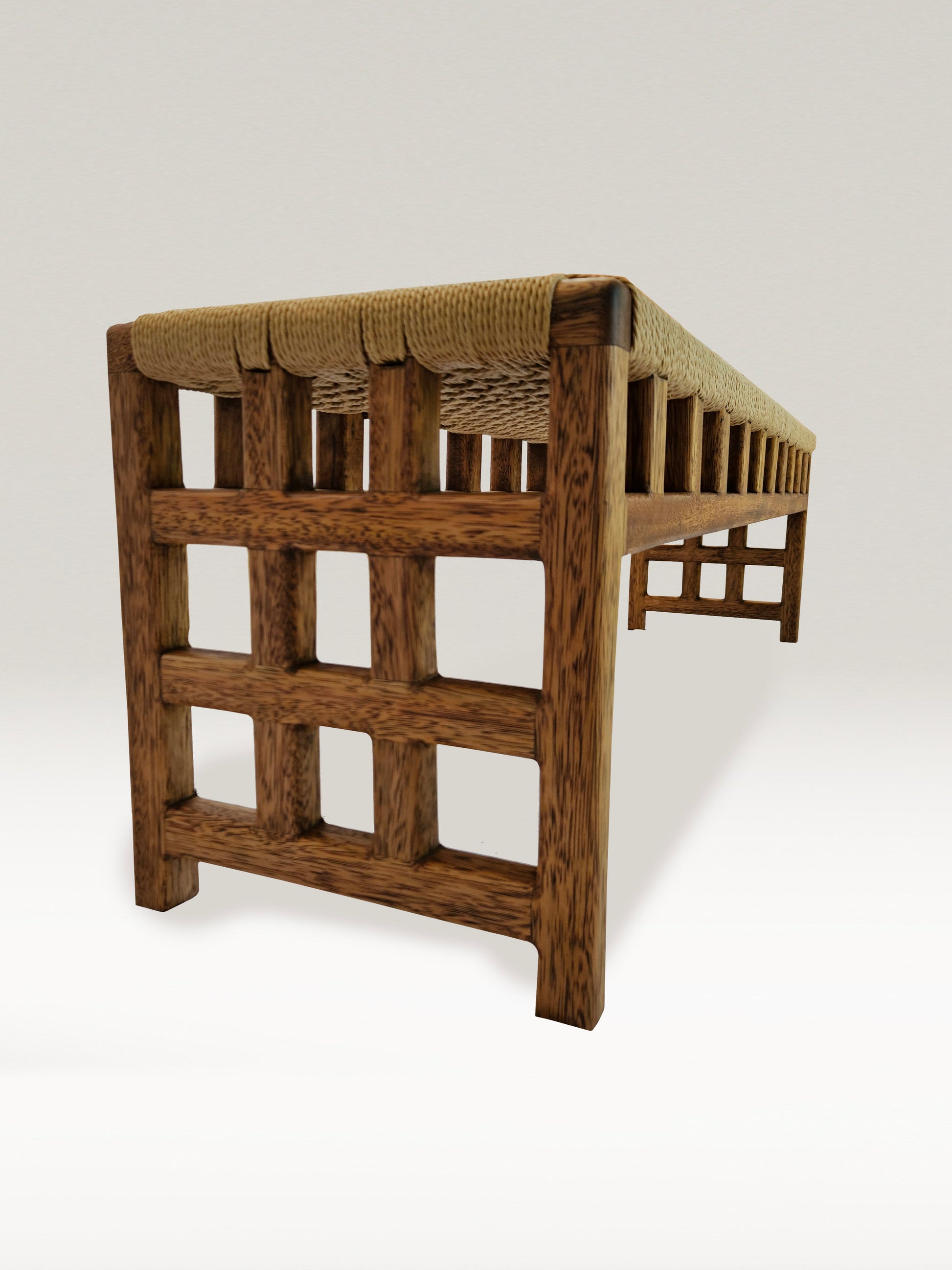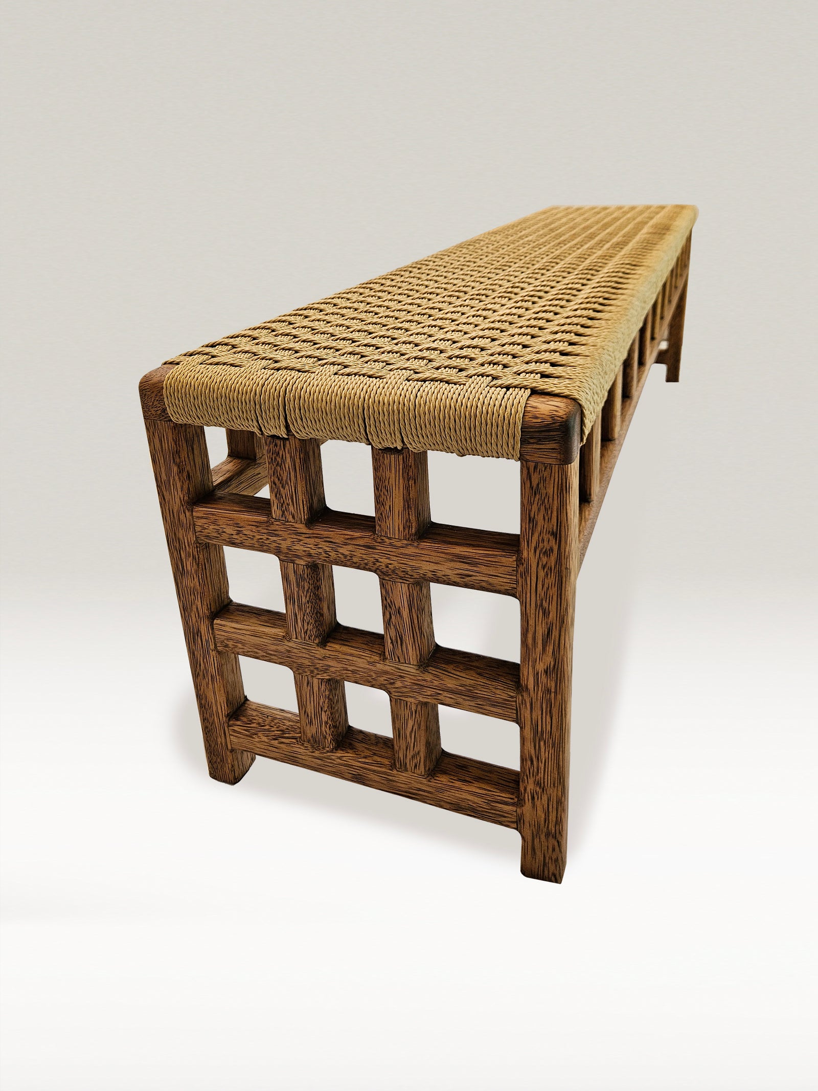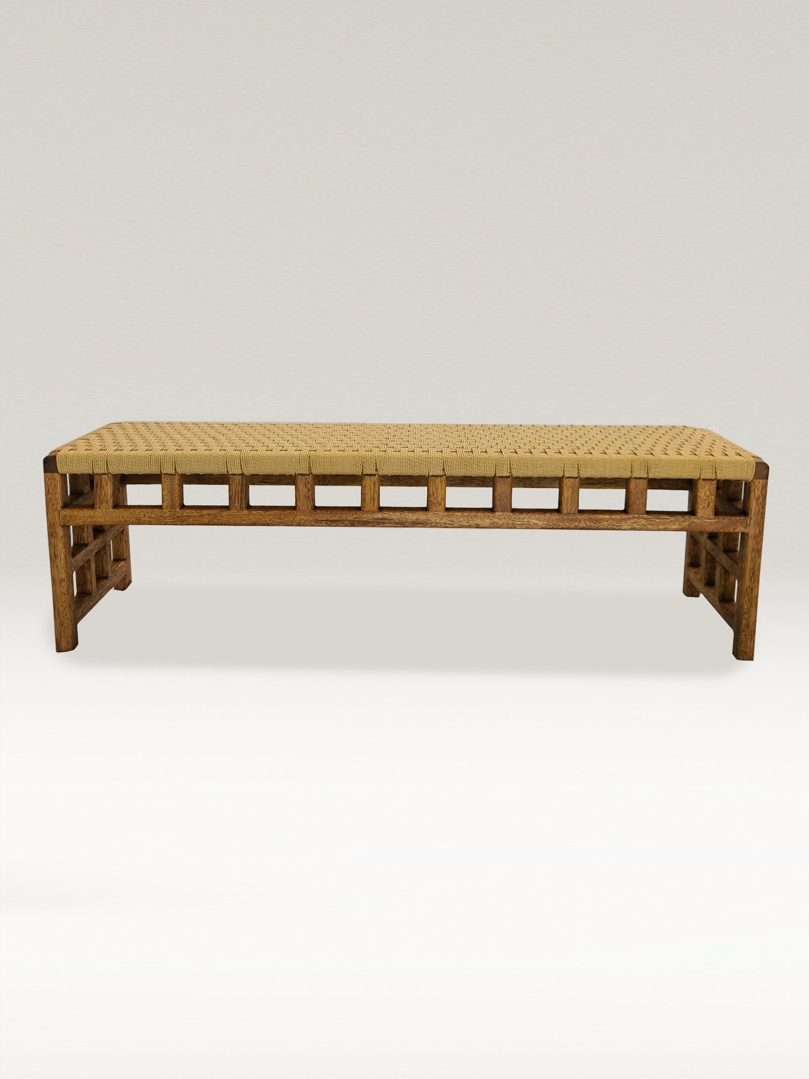Con un diseño que equilibra solidez y ligereza, la banca Taormina es una pieza que rinde homenaje al trabajo artesanal de alto nivel. Elaborada en madera sólida de Tornillo, destaca por su estructura lateral de cuadros boleados que le confiere un carácter escultórico y distintivo. El asiento, tejido a mano en cordón danés, ofrece comodidad, durabilidad y una estética natural que complementa cualquier espacio con elegancia sutil.Una banca versátil y sofisticada, ideal para interiores refinados que valoran lo hecho a mano y con propósito.