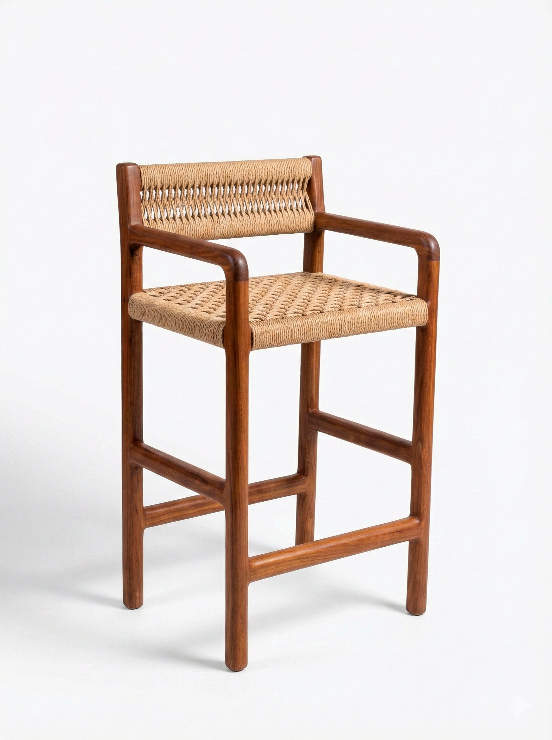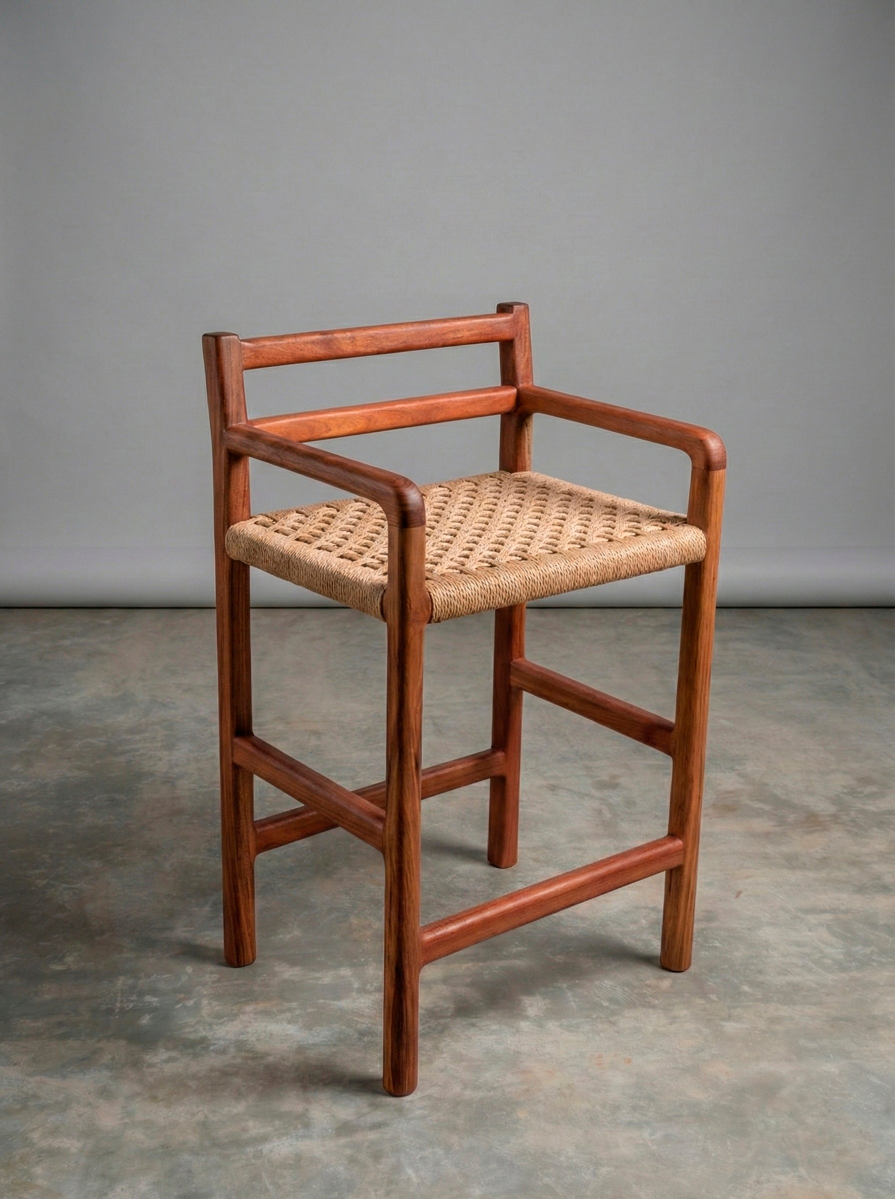 Banco elaborado en madera Rosa Morada Tornillo o Teca, puede ser tejido en cordón danés o cuerda sintética.