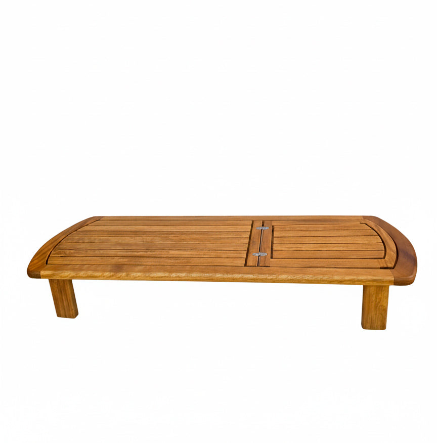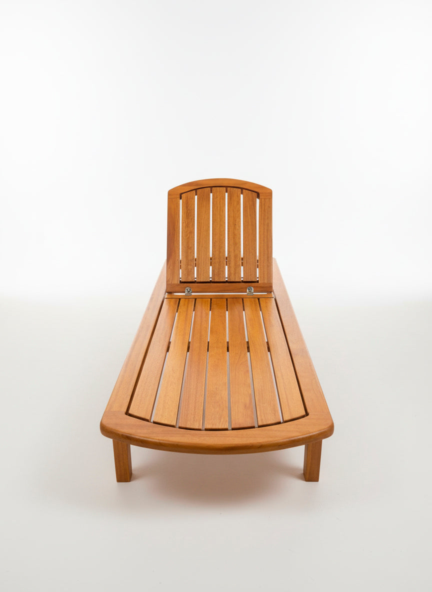 Inspirado en la cubierta de un yate, el Montecarlo combina líneas delicadamente curveadas con tiras verticales de madera Teca y herrajes de acero inoxidables.