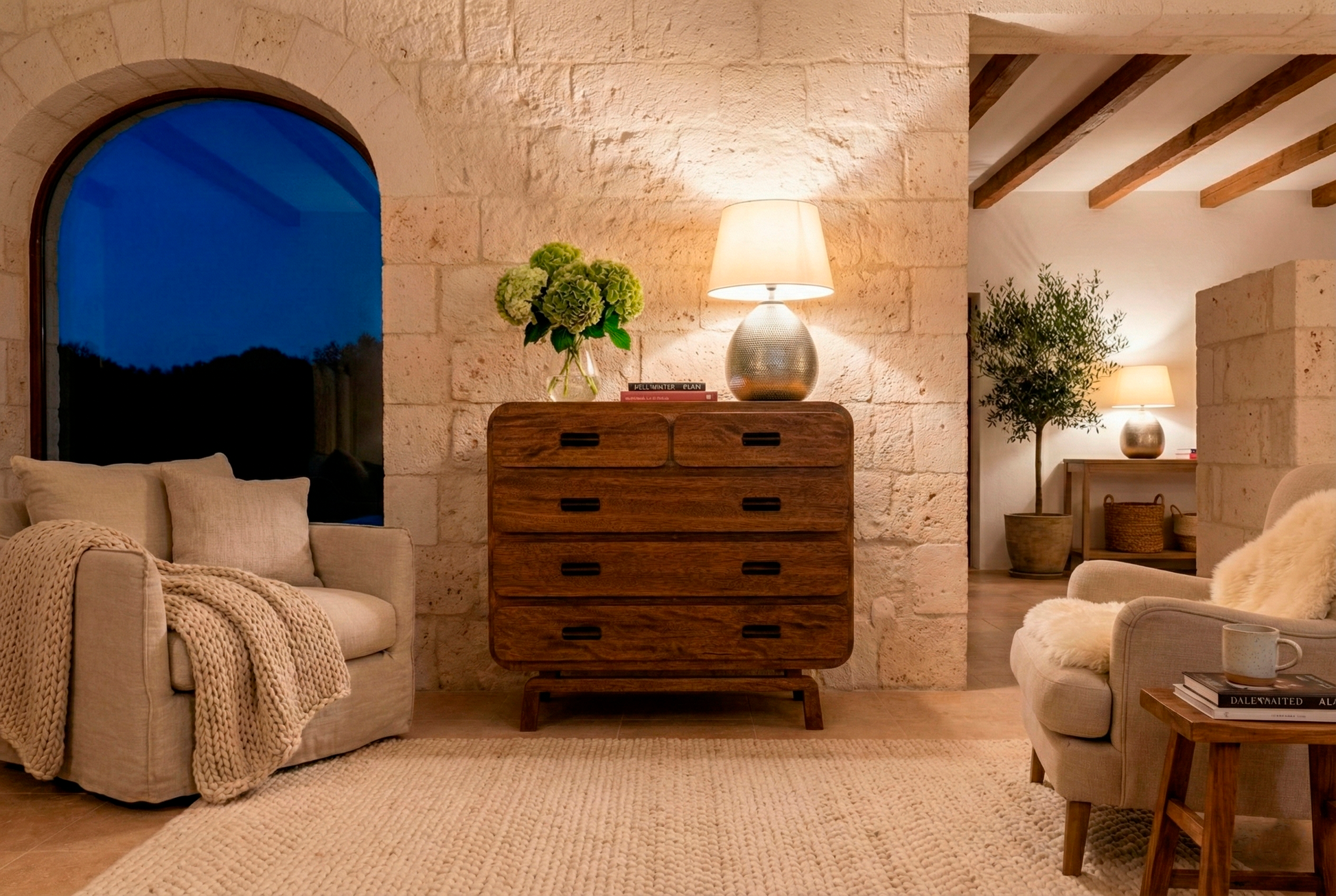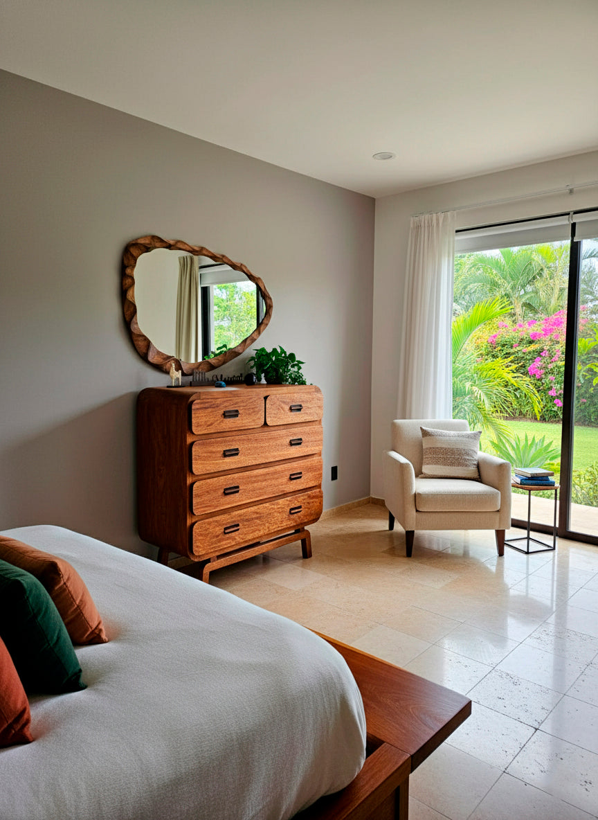 La Comoda Formentor esta elaborada en madera Tornillo, que por su atractiva veta, hace que sea un mueble muy confortable y agradable a la vista.