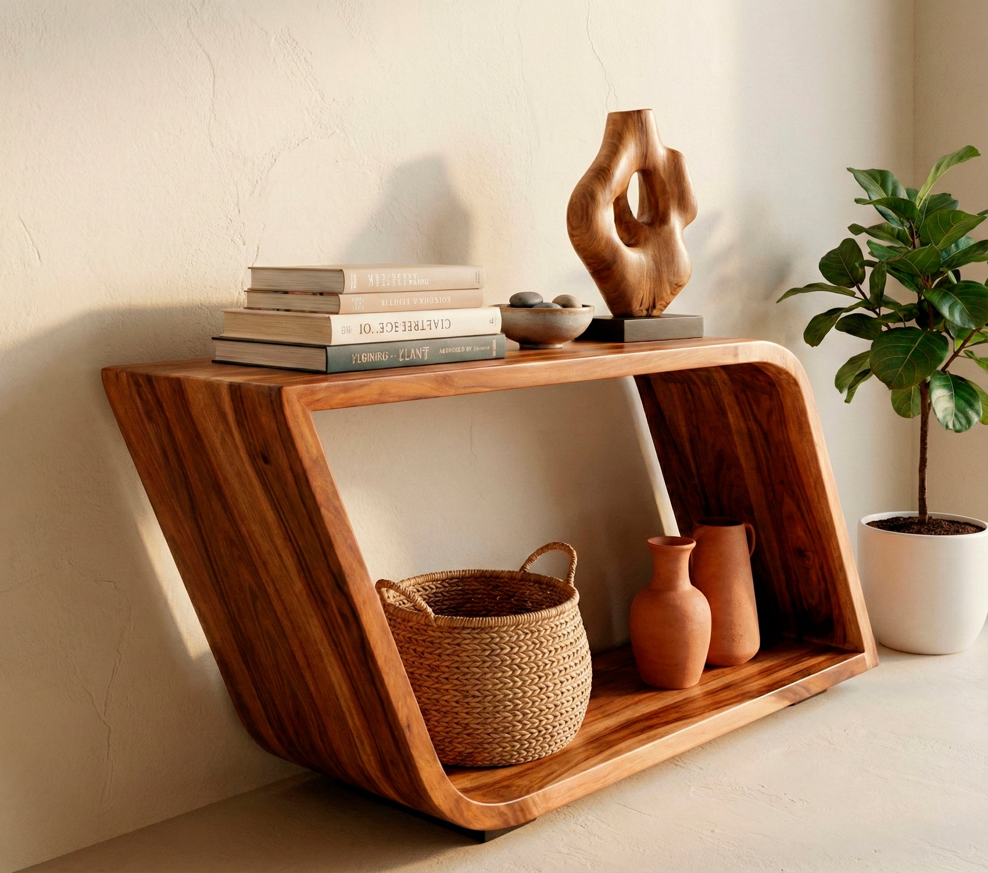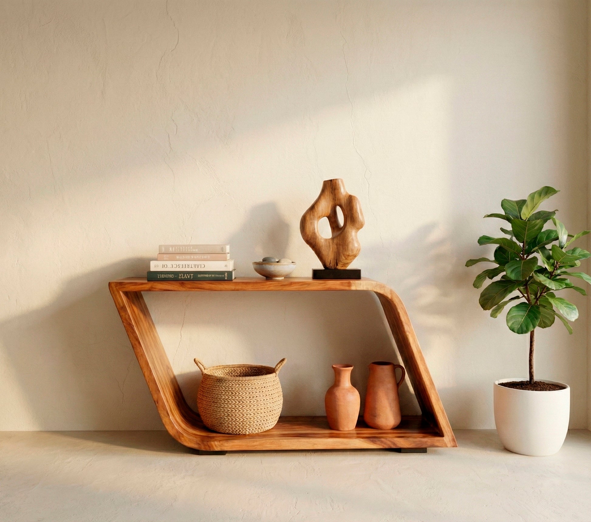 La consola Amboseli tiene un diseño original orgánico con su forma irregular y curveada. Se elabora con madera de 2 pulgadas de grosor. Puede ser de Parota, Tornillo y Rosa Morada.