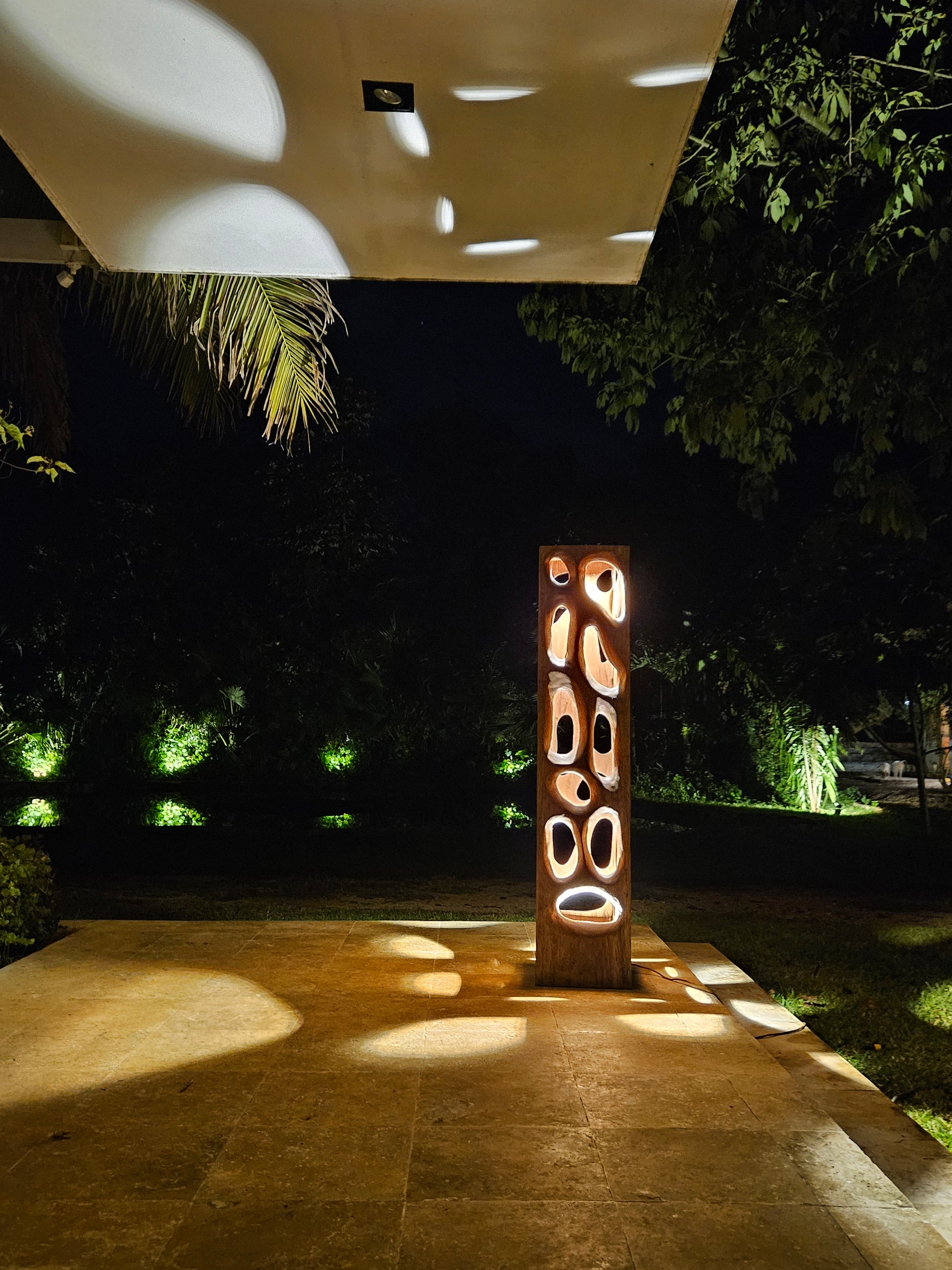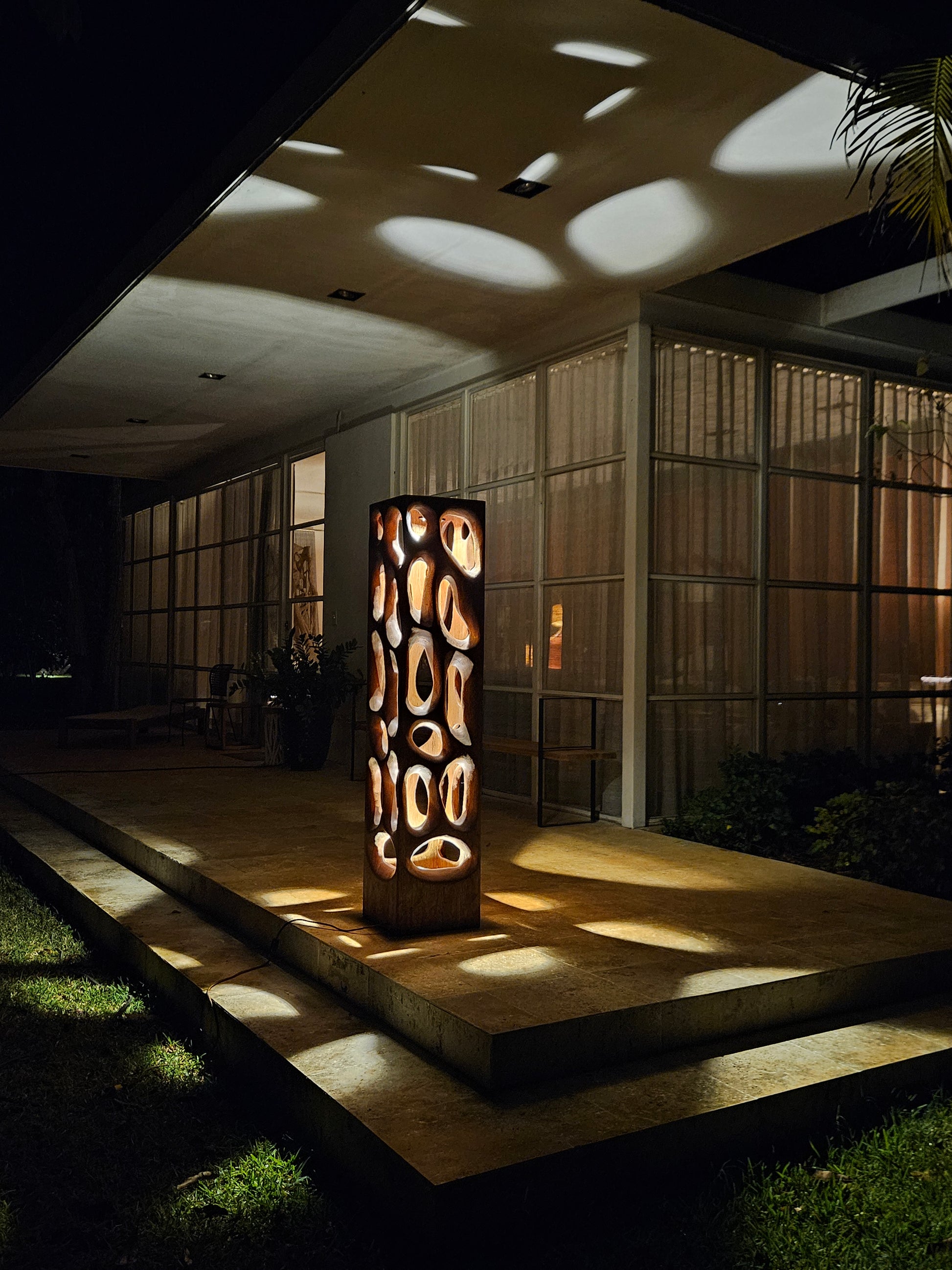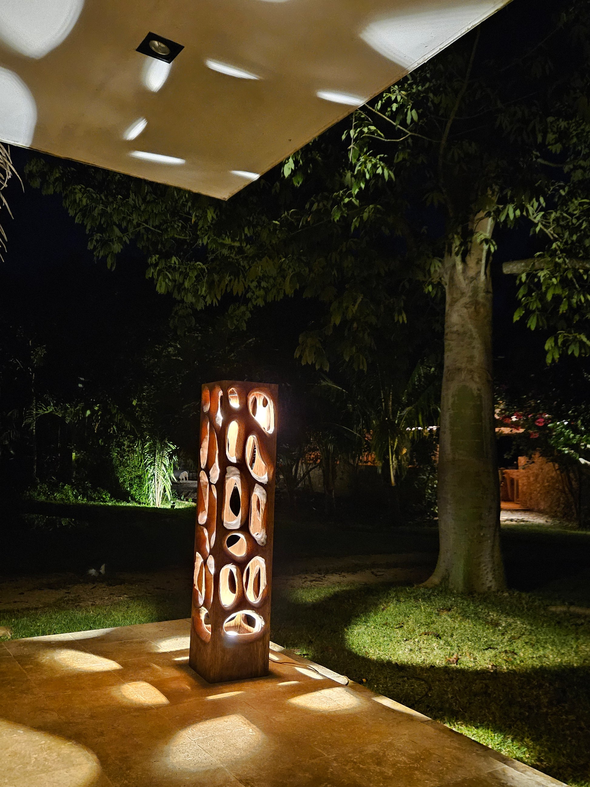 Una pieza escultórica de gran presencia, diseñada para transformar cualquier espacio interior o exterior. Tallada en Madera Tornillo con aberturas amorfas, la Lámpara Sintra proyecta formas caprichosas de luz y sombra que evocan la belleza orgánica de la naturaleza. Con 1.60 metros de altura, este cubo luminoso es tan imponente como delicado: Elegante, divertida y absolutamente inolvidable.