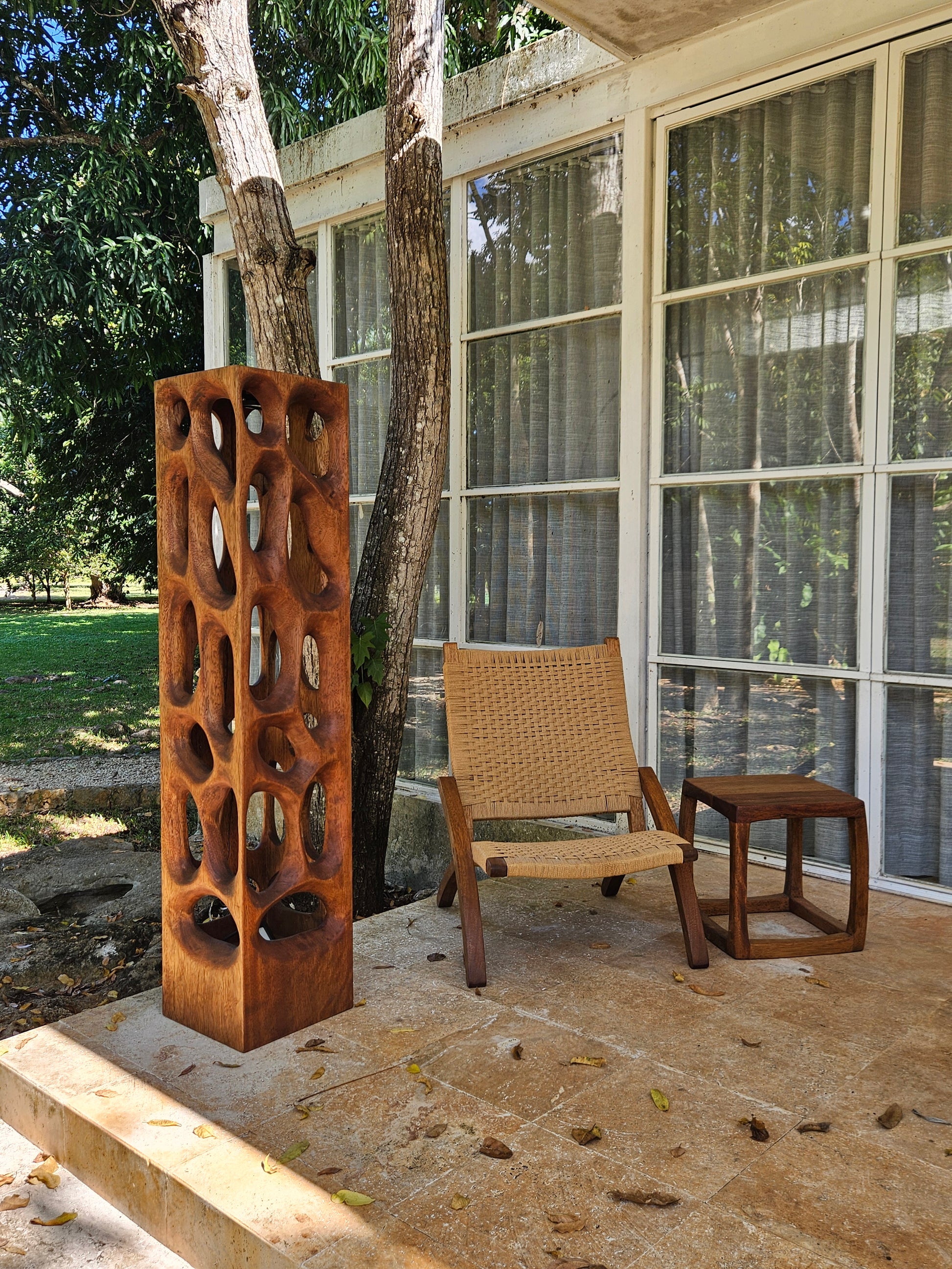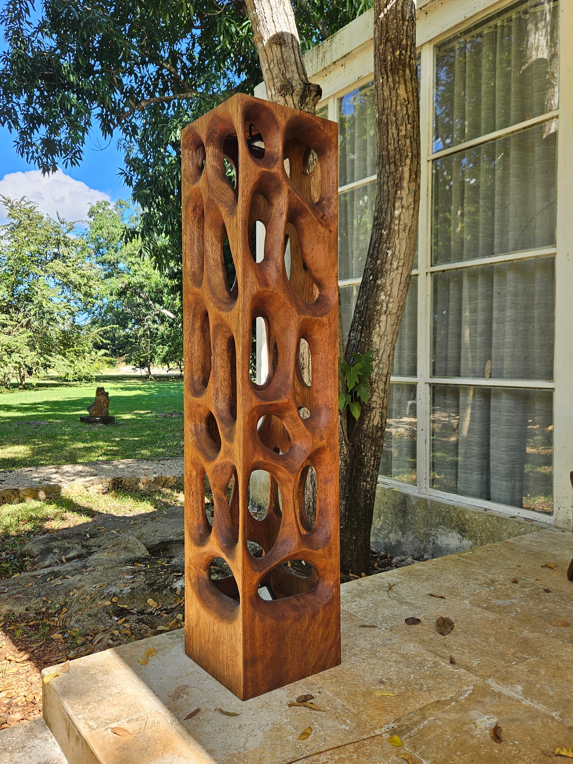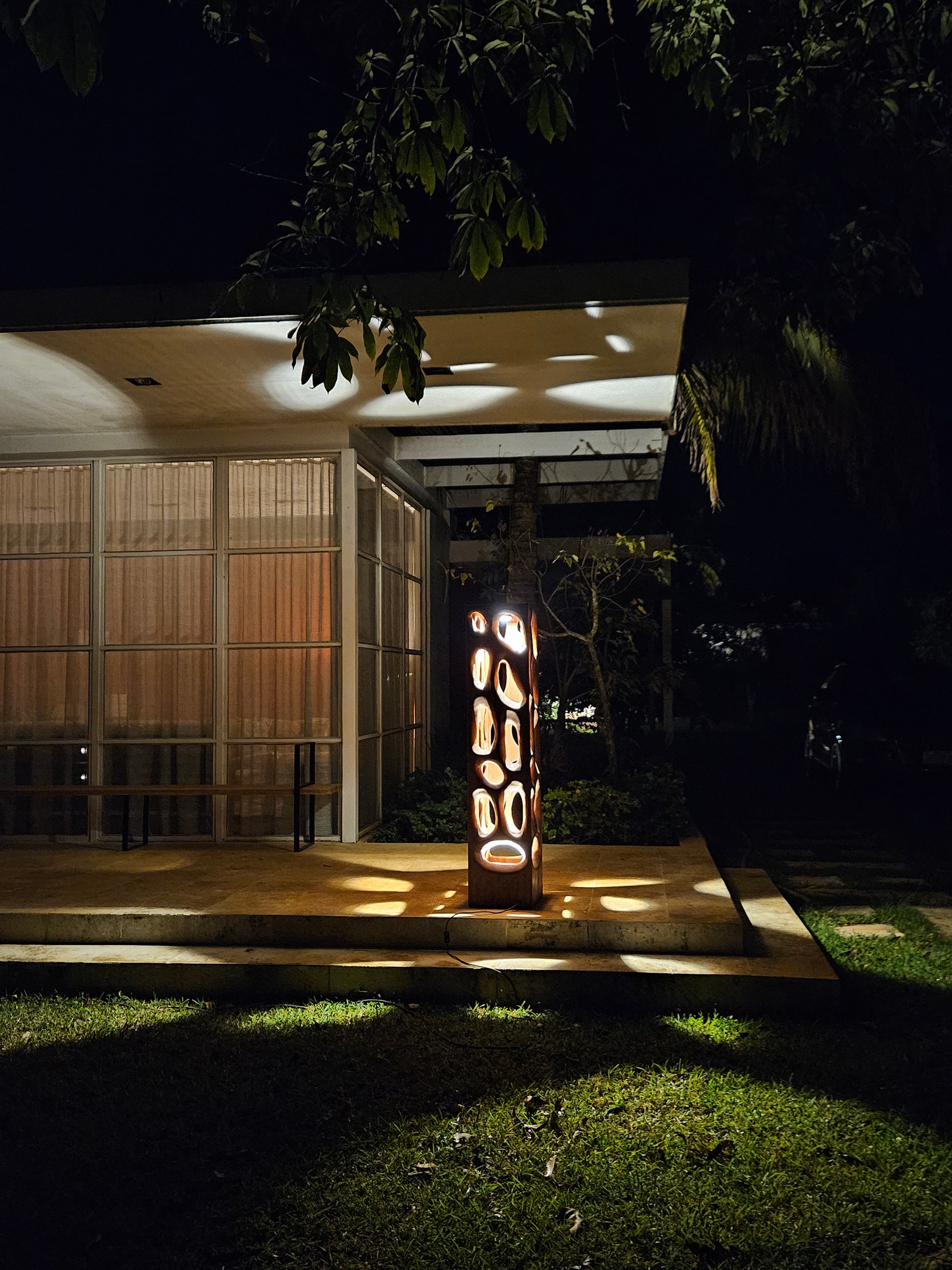 Una pieza escultórica de gran presencia, diseñada para transformar cualquier espacio interior o exterior. Tallada en Madera Tornillo con aberturas amorfas, la Lámpara Sintra proyecta formas caprichosas de luz y sombra que evocan la belleza orgánica de la naturaleza. Con 1.60 metros de altura, este cubo luminoso es tan imponente como delicado: Elegante, divertida y absolutamente inolvidable.