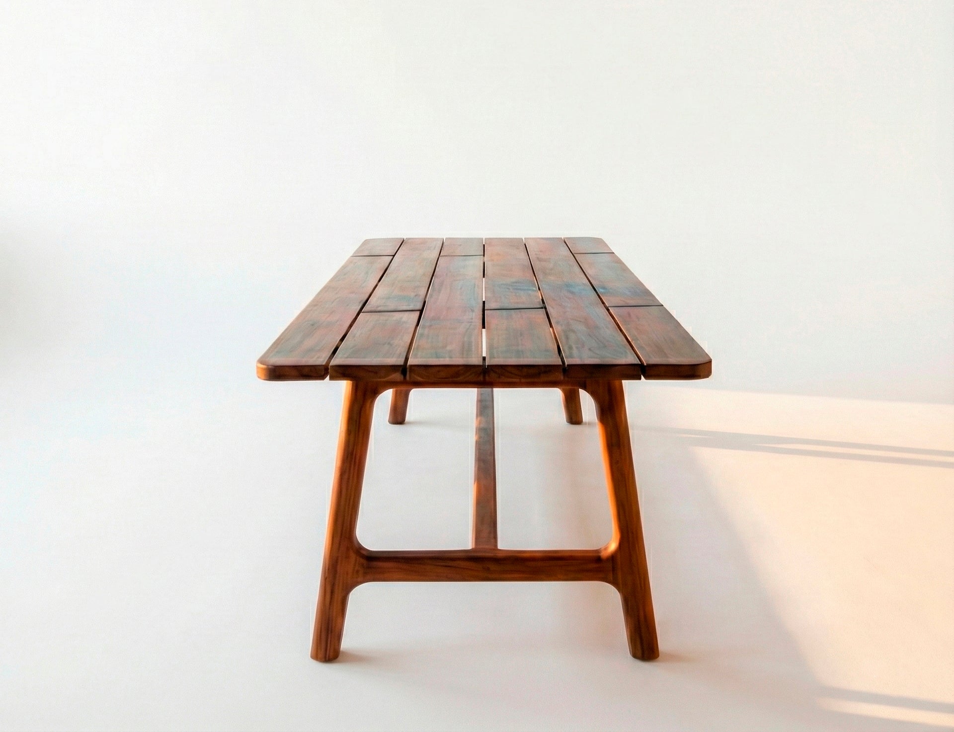 Elaborada en Pukté, Nogal y Teca, es una pieza ideal para residencias, terrazas privadas y espacios donde el lujo se expresa con discreción y carácter.